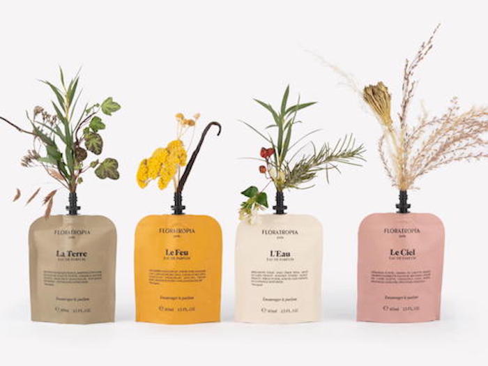 Ce sera décidé les parfums de Floratropia seront 100% naturels, issus de matières de la chimie verte, de l’upcycling et de la biotechnologie. Son chef d’orchestre créatif sera Delphine Thierry, parfumeur indépendante de son labo Inspiration Libre en liaison avec le portefeuille d’ingrédients de Robertet, et fabriqué chez Jean Bouis. “Quant au flacon, j’ai opté pour des flacons recharges. De cette façon, nous changeons l’équation environnementale et économique. En un mot, moins d’emballage réduit les déchets et les émissions de carbone tout en rééquilibrant le coût important du parfum naturel” m’explique Karine. Aujourd’hui, la marque propose 4 parfums, 4 histoires des éléments naturels que sont l’eau, le feu, la terre et le ciel. Outre le flacon nomade, la marque offre des flacons vintages chinés. Comme le dit très justement sa fondatrice, “je ne vends pas du flacon mais un nouvel art de vivre du parfum avec conscience et engagement pour le vivant.