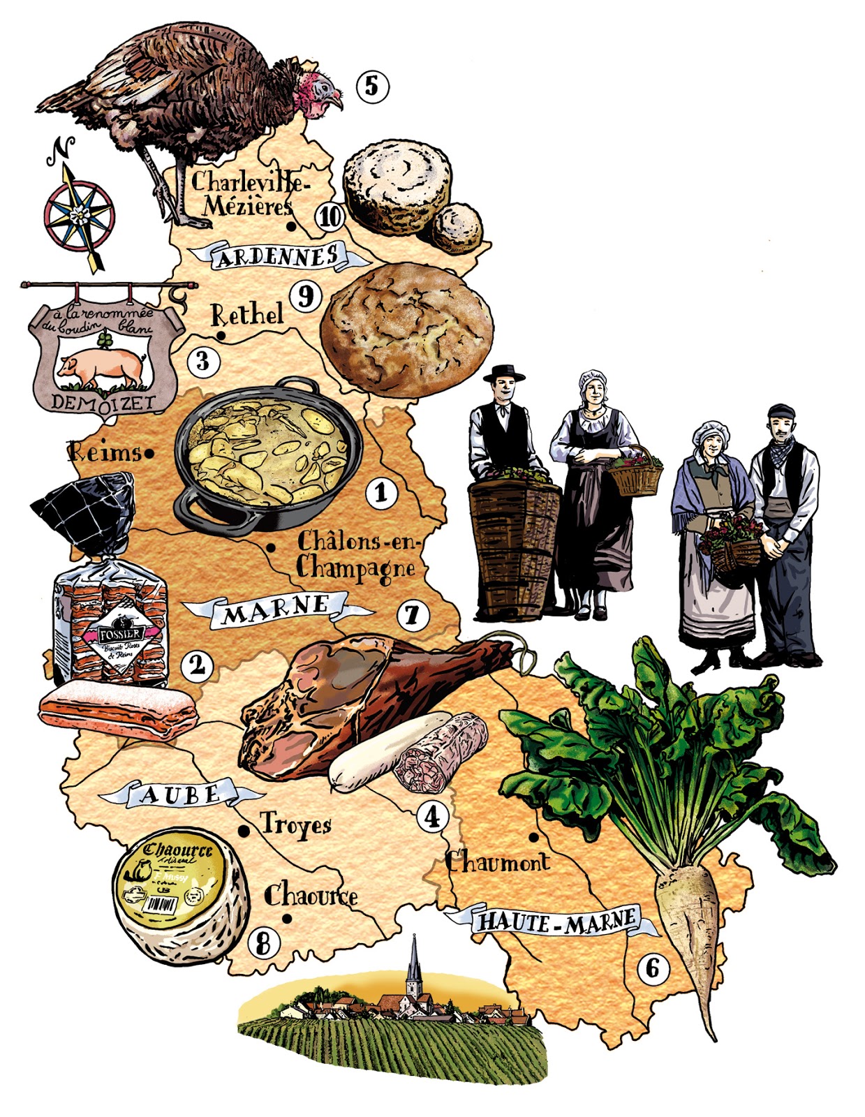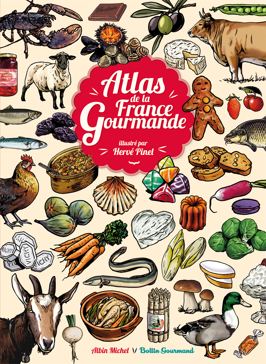Nous avons eu les cartes de la France Deyrolles montrant les fruits & légumes ou les fromages….aujourd’hui ce sont les éditions Albin Michel avec la complicité du bottin gourmand, et les Relais & Châteaux; qui nous proposent de ré-découvrir la France gourmande, au travers des 23 régions. A chacune d’elle, le lecteur trouvera les dix