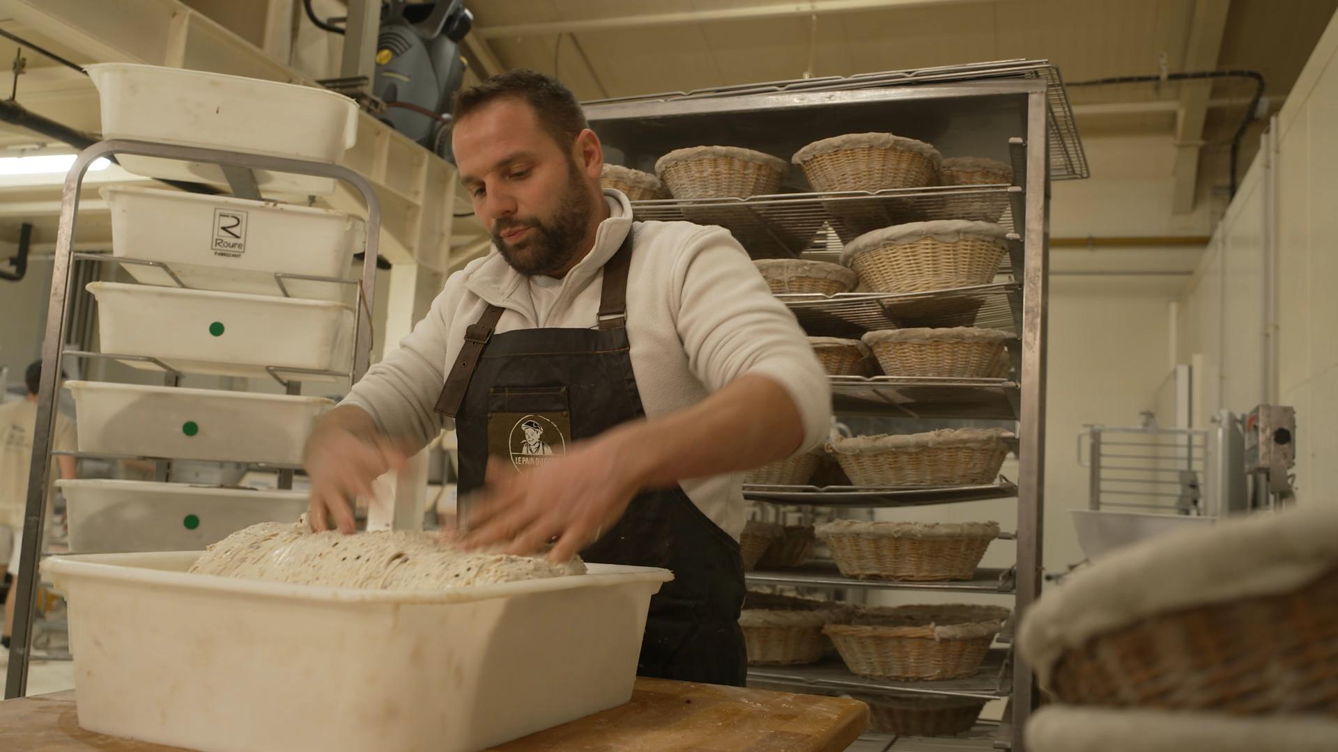 - François Pozzoli, l’unique MOF boulanger de Lyon et « Ambassadeur du pain » perpétue la tradition et le savoir-faire dans son labo de fabrication.
