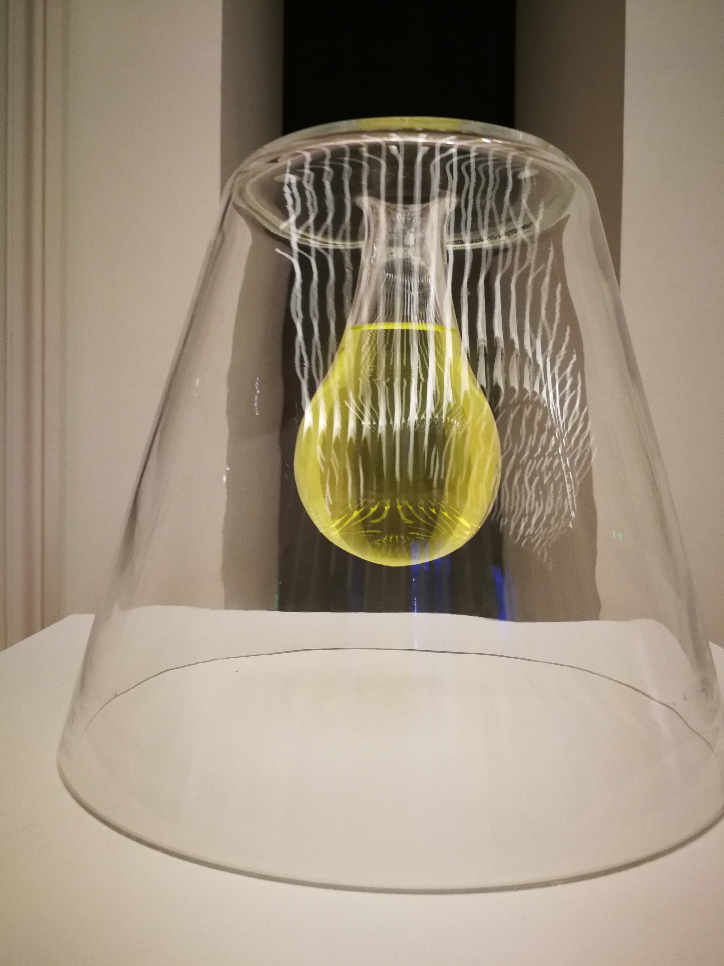 Poursuivons avec Matali Crasset dans la salle “l’Art de se parfumer”… Cette dernière a imaginé un élégant diffuseur de parfum en verre, Sunic avec la collaboration de Jean-Claude Ellena, parfumeur-créateur. Ce flacon, en forme d’abat-jour avec sa lampe renfermant la goutte de parfum, fait appel à l’odorat et la vue. Il s’agit d’un parfum aux notes de bergamote, pamplemousse, mandarine et jasmin.
