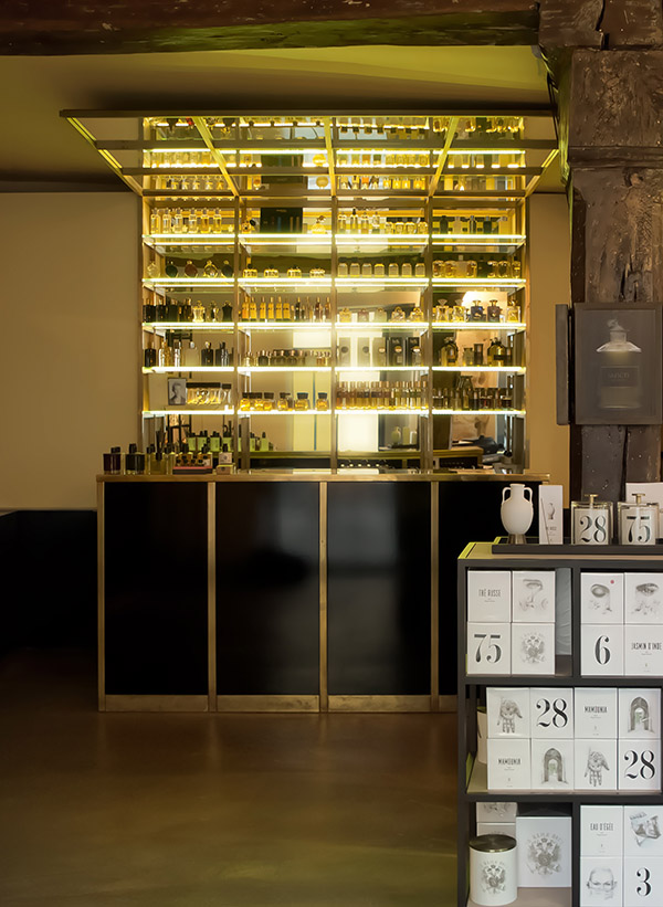 David Frossard Il devenait nécessaire pour nous, d’avoir notre propre lieu et, nous l’avons trouvé dans le Haut Marais. Nous voulions écrire une sorte de manifeste, en mettant en scène notre vision du parfum, avec un vrai parti pris. Une vision iconoclaste en un mot. Dès l’entrée dans notre boutique, nous désirions protéger le parfum du client, en apportant un supplément d’âme. Très souvent, on ne voit que son corps et j’estime que c’est de notre rôle que d’y apporter ce supplément d’âme.