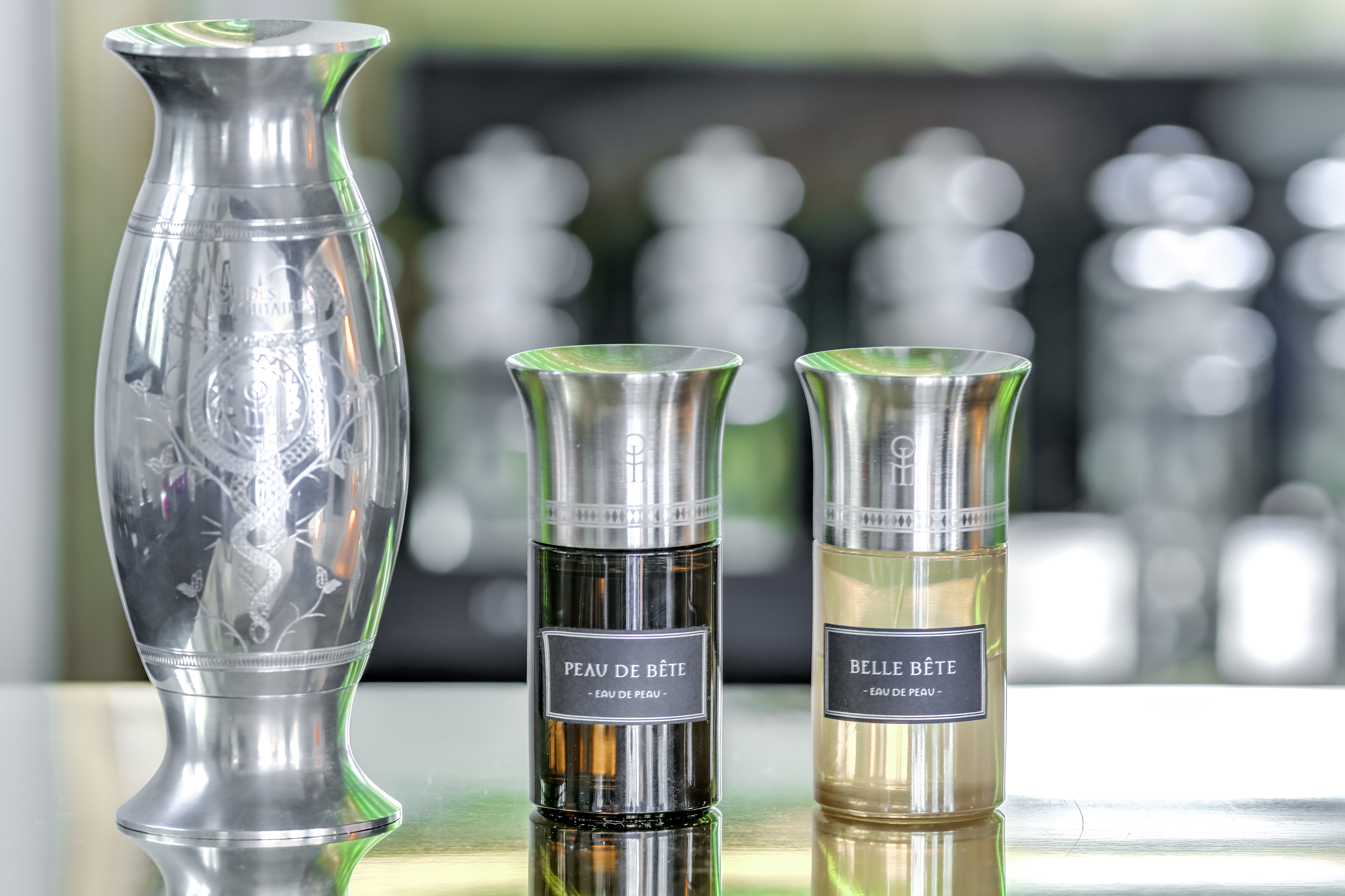 Nous fonctionnons par Trilogie pour chacune des collections (Eau-Delà, Eau Sanguine, Eau Arborante, Eau de Peau, Eau Imaginaire). Chez Liquides Imaginaires, nous avons une volonté de revenir à l’essence, même du parfum. En effet, à l’origine, le parfum était brûlé, avec les plus belles matières premières, pour honorer les dieux. Un rituel important pour demander toute intersession aux dieux.