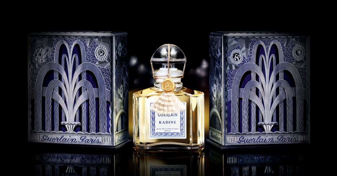 Depuis 2020, Guerlain a décidé de rééditer une création du passé. Donc tout a commencé avec Fol Amour et cette année, Kadine est à l’honneur. Une oeuvre de Jacques Guerlain dans l’esprit de l’époque et déjà sous influence de l’art déco. D’ailleurs, Kadine fête cette année, ses 110 ans.