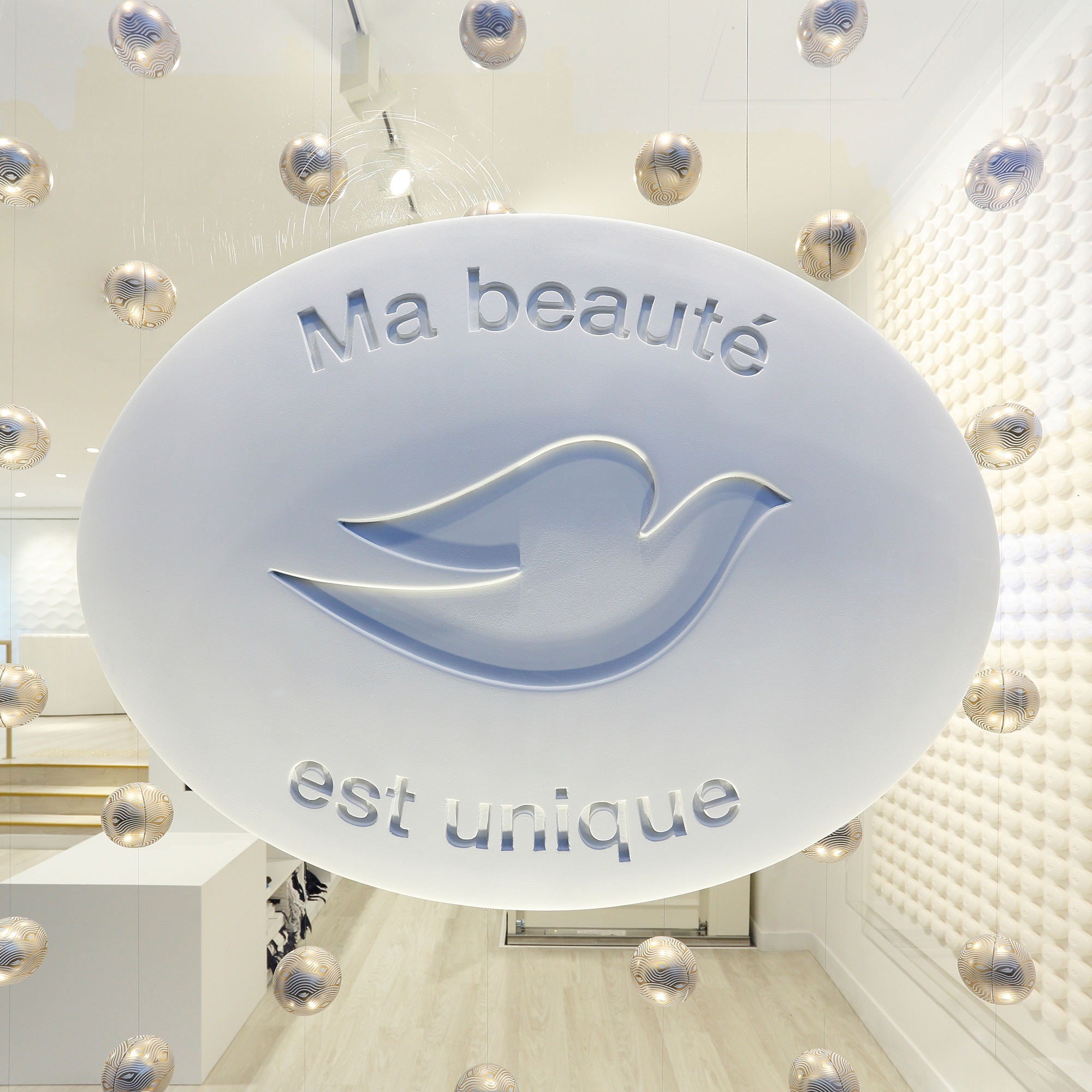 Mercredi dernier, j’ai eu la chance de découvrir, avant l’ouverture, le premier pop-up store dans le monde, de la célèbre marque Dove. Qui ne connait pas le pain de toilette blanc gravée d’une colombe ? Une colombe, symbole de la marque et symbole de la paix… Pourquoi ne pas faire la paix avec soi-même ? Une fois la porte franchie, vous êtes accueilli dans un lieu qui baignant de lumière, une lumière blanche et or. L’endroit est chaleureux, authentique. Tout vous incite à laisser vos préoccupations à la porte, et pour quelques instants vous faire du bien !