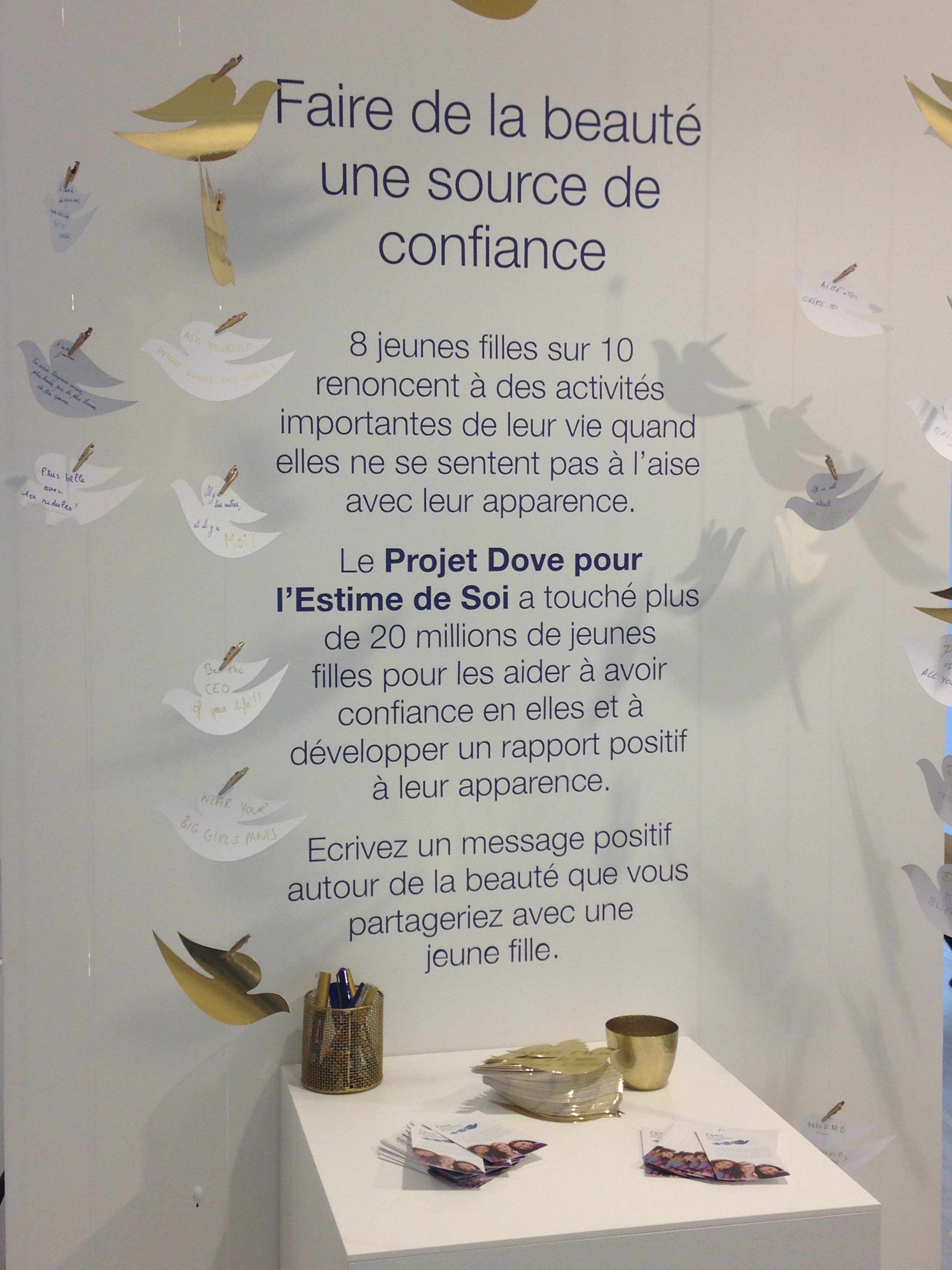 Une première mondiale, la marque Dove, ouvre à Paris, au 108 rue Saint-Lazare, le premier pop-up store du 10 novembre au 18 décembre 2016. Depuis 60 ans, la marque Dove s’est donnée comme mission d’aider les femmes et les jeunes filles, à développer une relation de confiance envers elles-mêmes. Cette dernière vous propose d’aller à la rencontre de son univers, et vous offrir un produit sur-mesure. Une expérience que je vous conseille vivement.