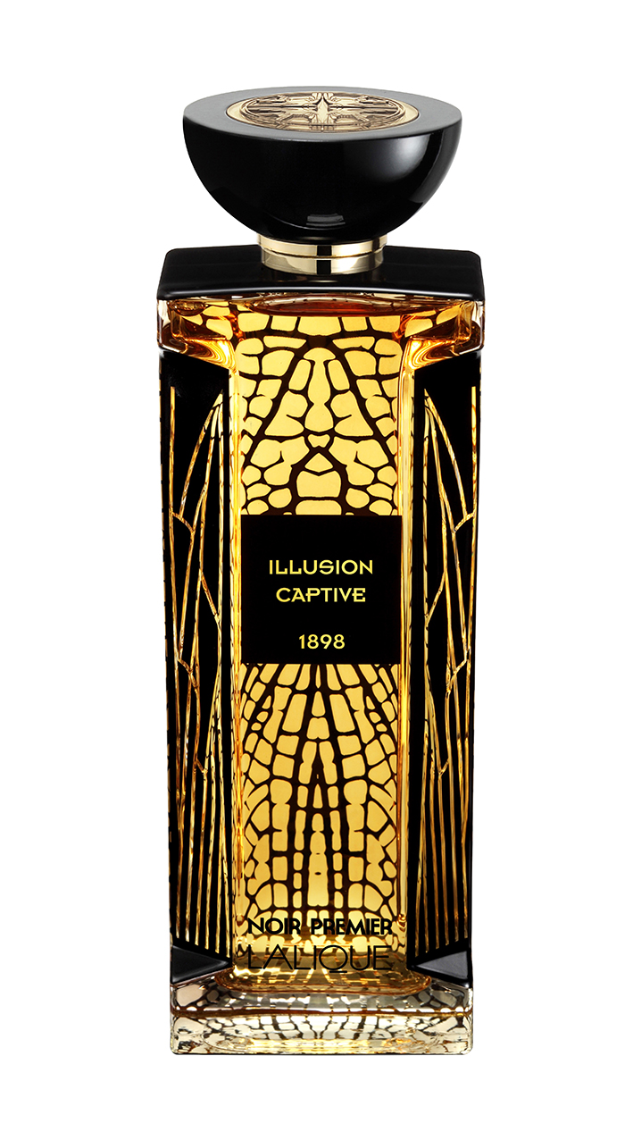 Illusion Captive est le sixième parfum de la collection “Noir Premier” de la Maison Lalique. Or, ce flacon est un hommage à “la broche Libellule”, une des oeuvres les plus emblématiques de l’Art Nouveau et de Lalique, créée en 1898. Karine Dubreuil, parfumeur de Vox Profumi, souligne à propos de ce parfum « J’ai voulu travailler un Chypre, en lui apportant une fraîcheur plus moderne, avec un coeur floral tout en transparence. Cette lumière est magnifiée par un fond boisé plus sombre.” Cette dernière a désiré dépoussiérer la partie sombre d’un Chypre !