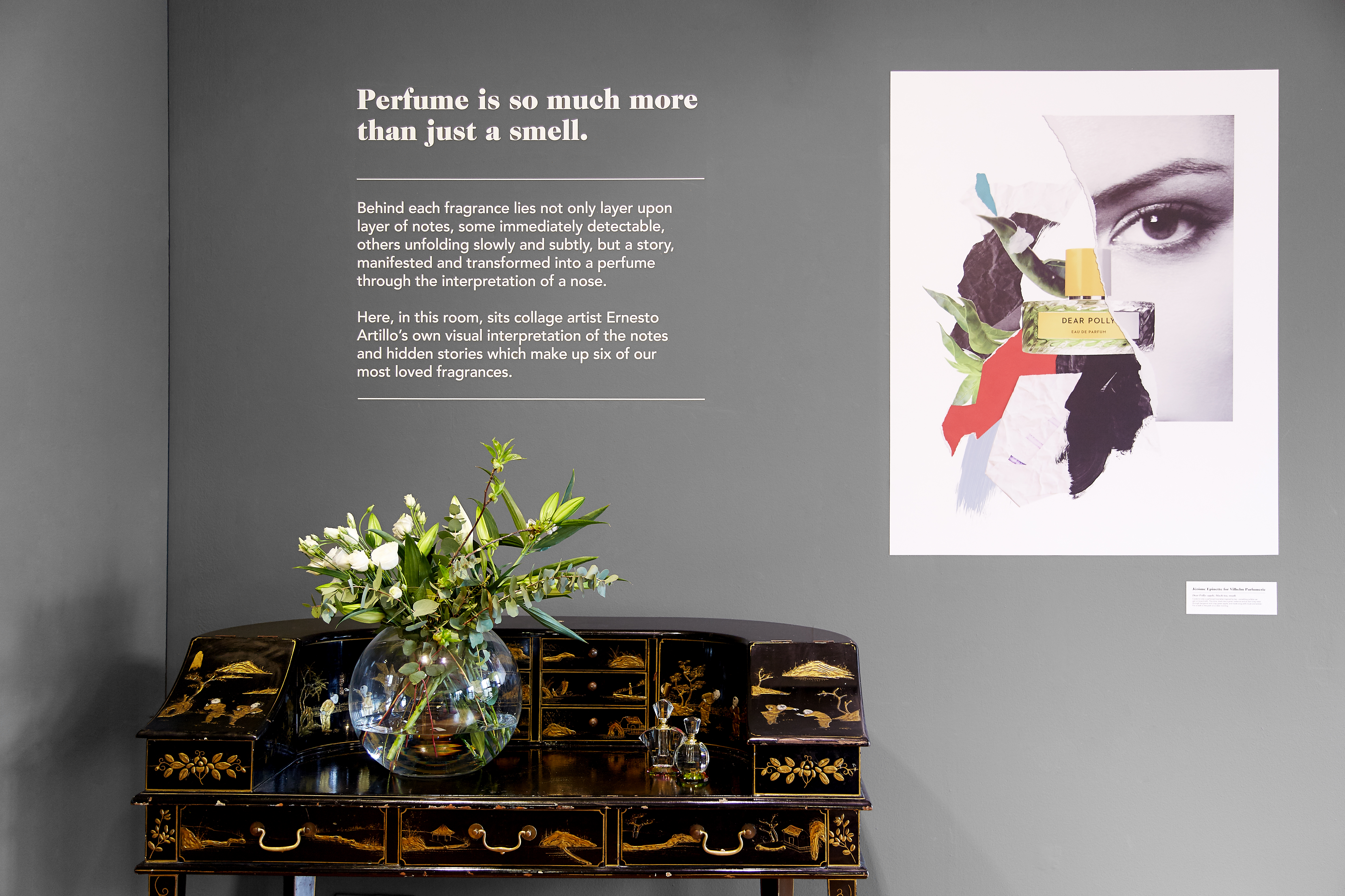 Ernesto Artillo a mis en lumière au travers de collages des marques de parfum suivantes. Ces derniers seront en vente en édition limitée.