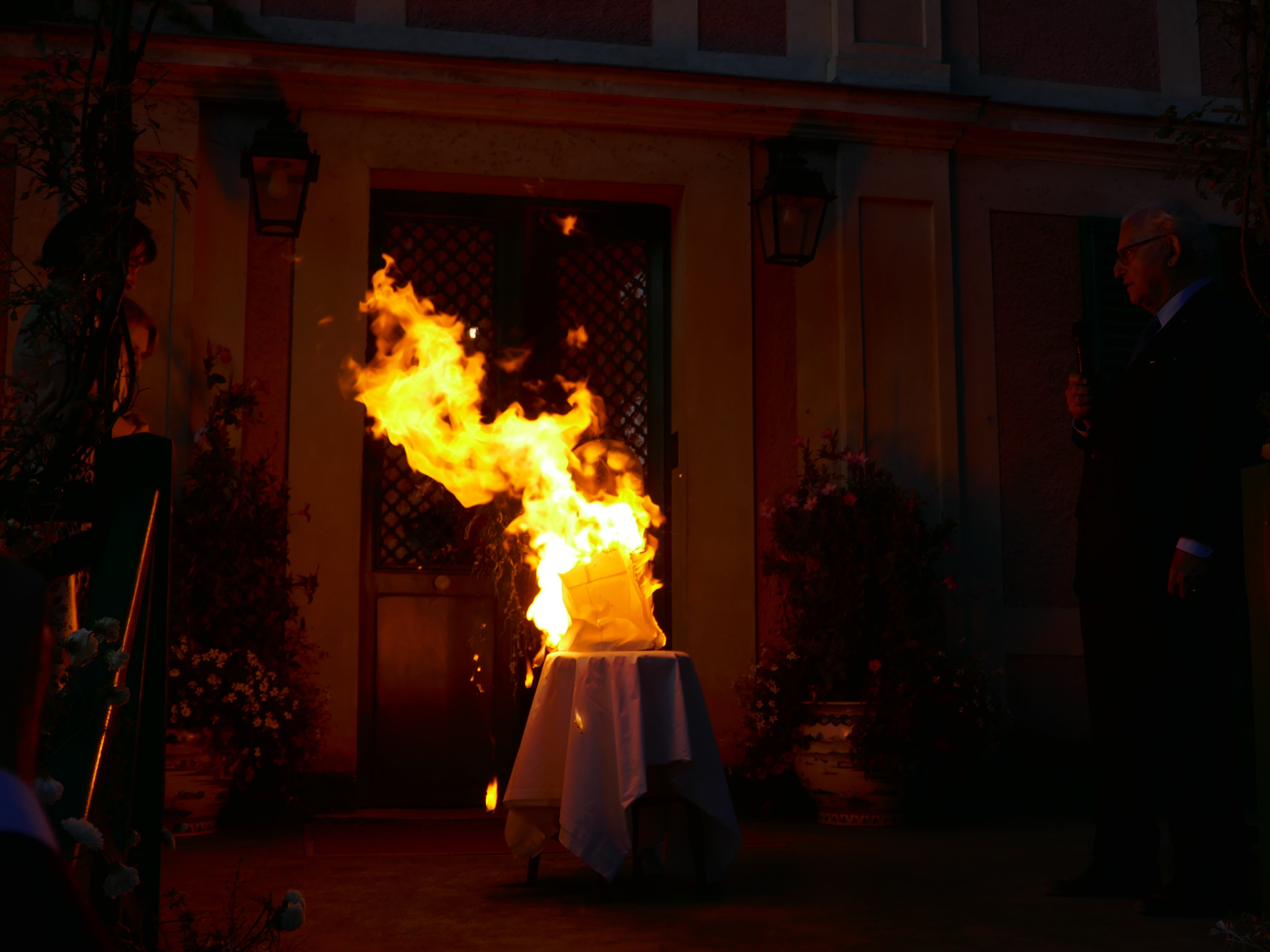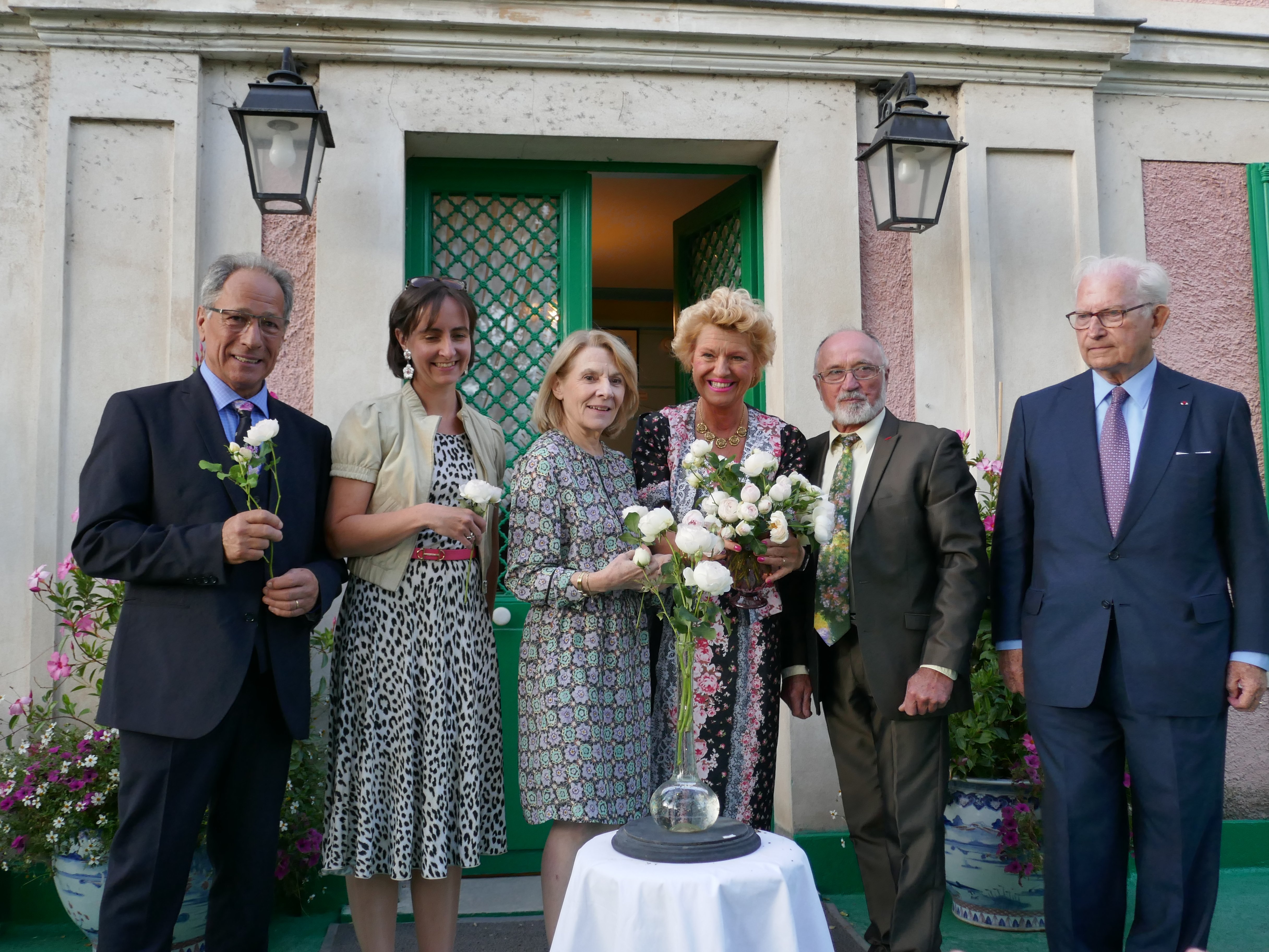 Par une belle fin d’après-midi ensoleillée, et un soleil couchant sur le jardin de Monet, Hugues Gall, Académicien des Beaux-Arts et ancien directeur de l’Opéra de Paris, a dérogé aux traditionnels baptêmes des roses. Soigneusement enveloppée, la rose Gerald Van der Kemp, est apparue après s’être embrasée. Tout une mise en scène originale qui n’est pas sans rappeler un décor d’Opéra !
