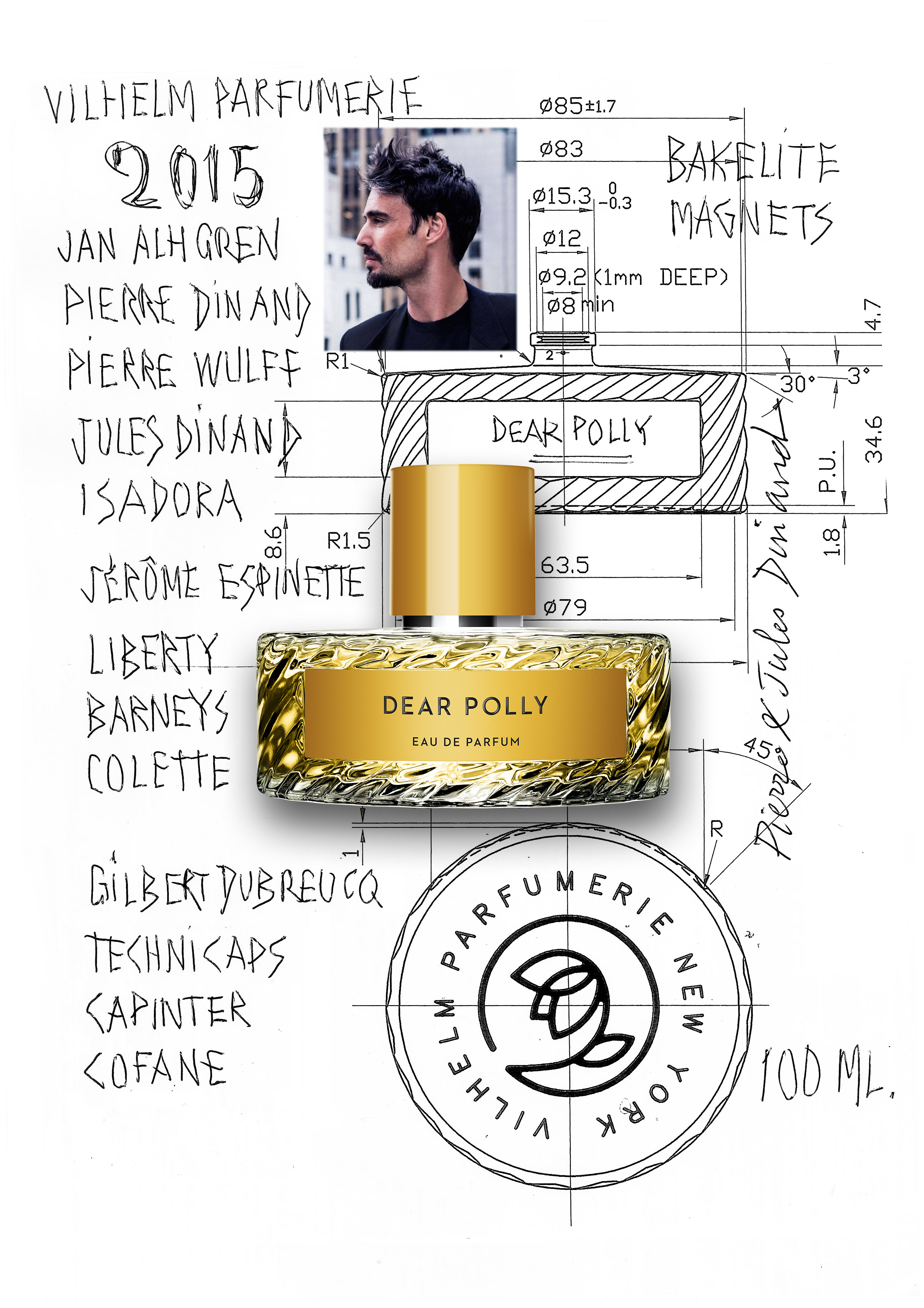 L’amitié entre la Suède et Pierre Dinand remonte à de nombreuses années, quand ce dernier travaillait pour Pierre Robert, une société de cosmétiques, dirigée par Knut Wulff. Puis, il poursuivra avec son fils Pierre, et réalisera ainsi les flacons des parfums Gilda, Bjorn Borg et Gant. Enfin, plus récemment, ceux de Wilhelm Parfumerie. C’est en discutant avec Jan Alhgren que Pierre appris qu’il avait la même passion du hockey. D’où le flacon aux airs d’un palet de hockey, côtelé pour évoquer la vitesse du jeu. Et le bouchon avec son étiquette jaune, un clin d’oeil aux bracelets de bakélite jaune portés par Danielle, la femme de Pierre.