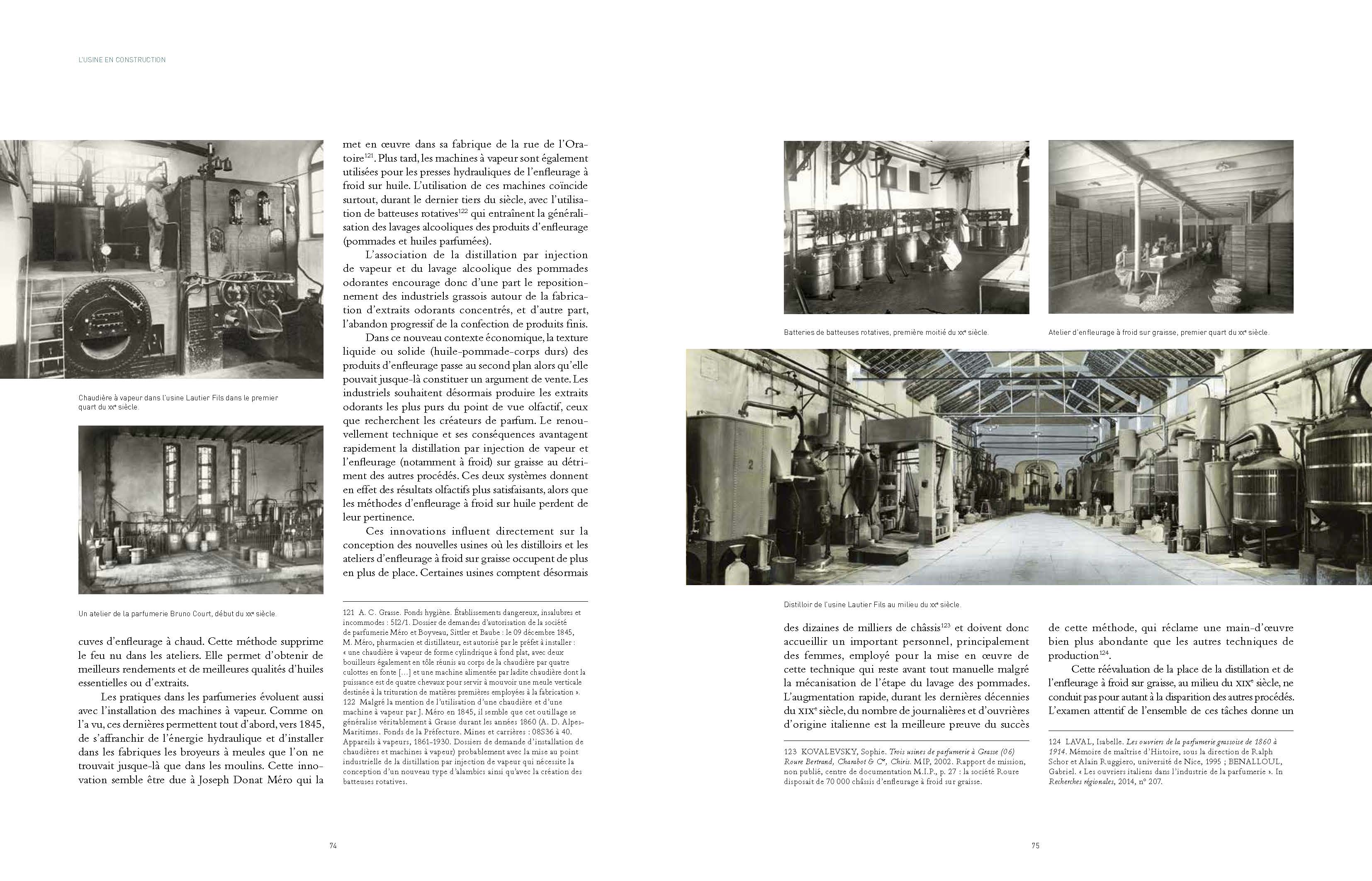 C’est avant tout un passionné. Il est aussi chargé de mission pour l’inventaire du patrimoine au service d’Art et d’Histoire de la ville, dirigée par Laurence Argueyrolles, Gabriel est titulaire d’un DEA d’histoire. Il me confiera “Le livre est terminé mais je crois que je n’arrêterai jamais de travailler sur l’histoire de la parfumerie. La vie des entreprises, leurs archives, l’évolution des pratiques, l’empreinte de l’industrie sur le paysage, le tissu social, tout est passionnant. Faire comprendre l’architecture industrielle au grand public est difficile mais c’est une démarche indispensable pour éviter que des pans entiers d’histoire ne sombrent dans l’oubli.” Pour lui, la culture matérielle du parfum fait l’unanimité à travers l’histoire du flaconnage et des affiches, les lieux et les outils de production. Certains bâtiments prestigieux à l’architecture remarquable sont conservés parfois, en les détournant avec brio de leur destination première. D’autres ont disparu sous les coups de pelleteuses. Heureusement, quelques cheminées ont été épargnées et disent tant la fierté d’un territoire que la permanence d’une histoire collective… Ce sont des témoignages à valoriser tout autant, que le sont les savoir-faire liés au parfum. Des visites comme celle de l’usine de Méro Boyveau ont marqué Gabriel. Il me racontera que les odeurs d’humidité mais aussi celles d’un parfum indescriptible, planaient toujours dans l’atmosphère lors de cette visite. Une odeur caractéristique était toujours là, aussi chez Charabot.