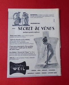 En réalité, il est à noter que les parfums Weil ont vu le jour aux Etats-Unis. Ces parfums furent conçus pour habiller les somptueuses fourrures alors en vogue dans les Années Folles. D’autre part, ils étaient aussi là pour couvrir l’odeur tenace des peaux. D’ailleurs la plupart de leurs parfums portaient des noms de bête telles que Zibeline, Antilope, Chinchilla….