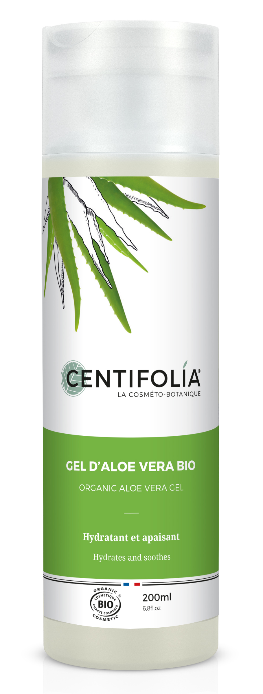Le gel d’aloe vera de Centifolia : Le gel est composé de 98% de jus d’aloe vera bio obtenu par un procédé permettant de conserver sa teneur en actif et nutriment. Le gel est composé d’un mucilage à l’intérieur des grosses feuilles. De fait, cette plante est utilisé depuis plus de 5000 ans.