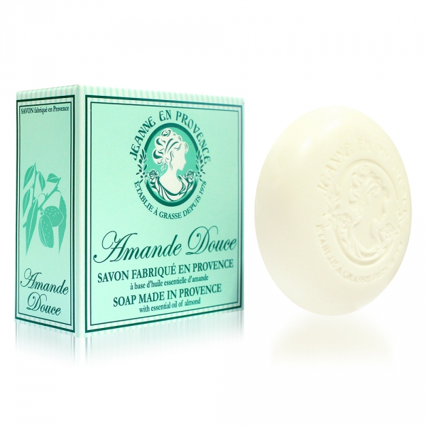 Dans sa gamme, Jeanne en Provence, propose un savon de 100gr, parfumé à 7 parfums différents. La plupart sont enrichis soit l’huile d’amande douce, soit l’huile de karité. J’ai bien aimé celui à l’huile d’amande douce.