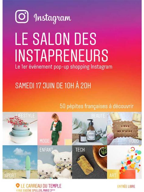 Le réseau social Instagram organise au Carreau du Temple à Paris, le samedi 17 juin 2017, le tout premier salon des Instapreneurs, auprès du grand public. L’objectif d’Instagram est de prolonger l’expérience de la plateforme dans la vraie vie et poursuivre sa mission de rassembler et renforçer les liens de sa communauté autour d’expériences partagées. Un rendez-vous à ne pas manquer, Jim Squires, Head of Instagram Business, y sera présent.