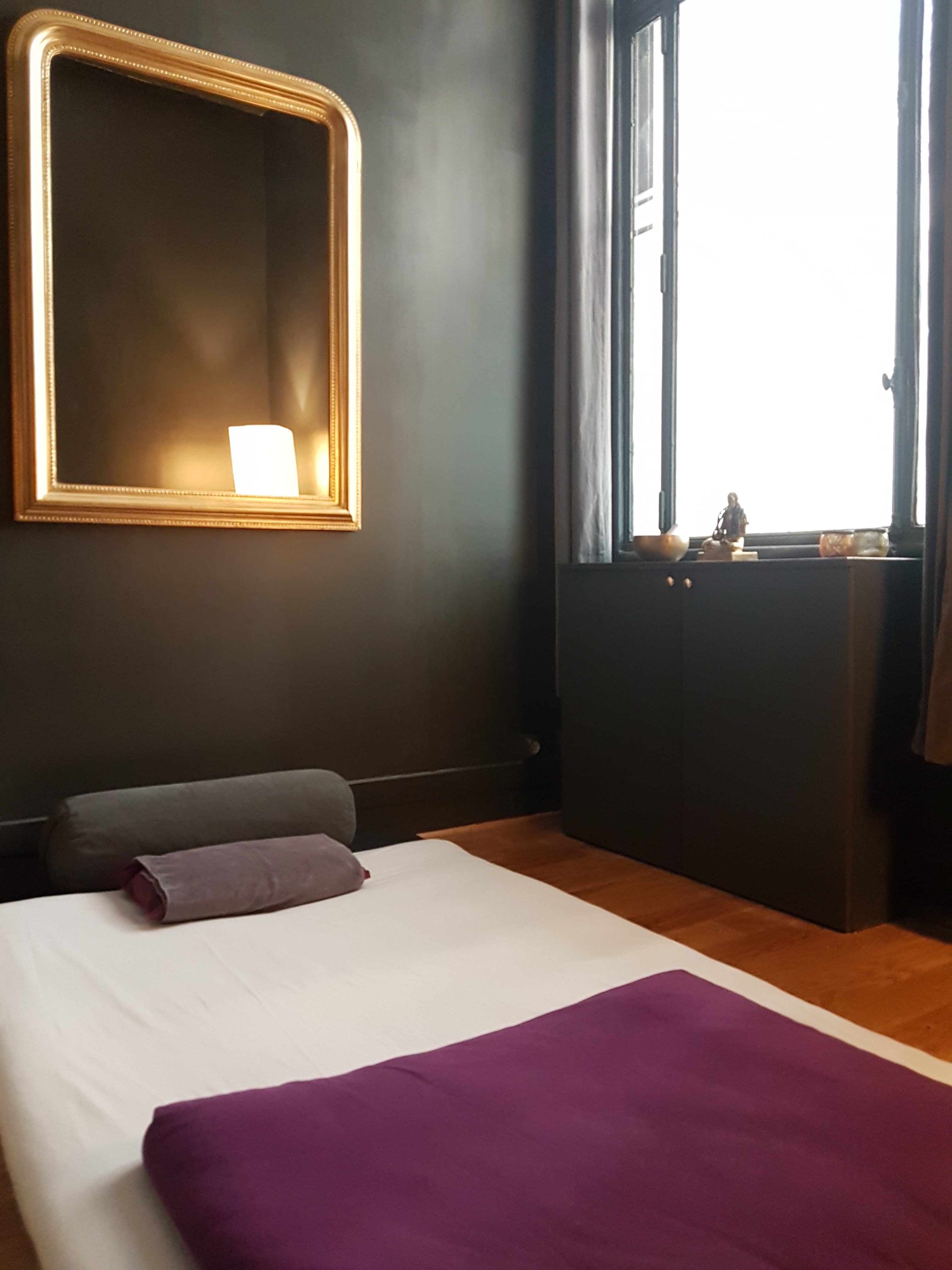 Une fois arrivée, je suis accueillie par Yong qui me propose de mettre un pantalon thai. Puis, je m’allonge sur un futon posé au sol. La pièce n’est pas grande mais elle est lumineuse et les murs aux couleurs verts foncés élégants. Avant de commencer, Yong me pose une série de questions sur ma santé, mon hygiène de vie.
