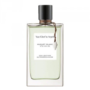 Muguet Blanc fait parti de la collection de la Collection Extraordinaire’ du joaillier Van Cleef & Arpels. Antoine Maisondieu, parfumeur chez Givaudan, a souhaité ciseler un muguet en gardant ainsi toute la délicatesse touchante et gracieuse de la fleur. Au final, la fleur de muguet côtoie la pivoine, avec une touche de néroli et une caresse de cèdre et de musc.