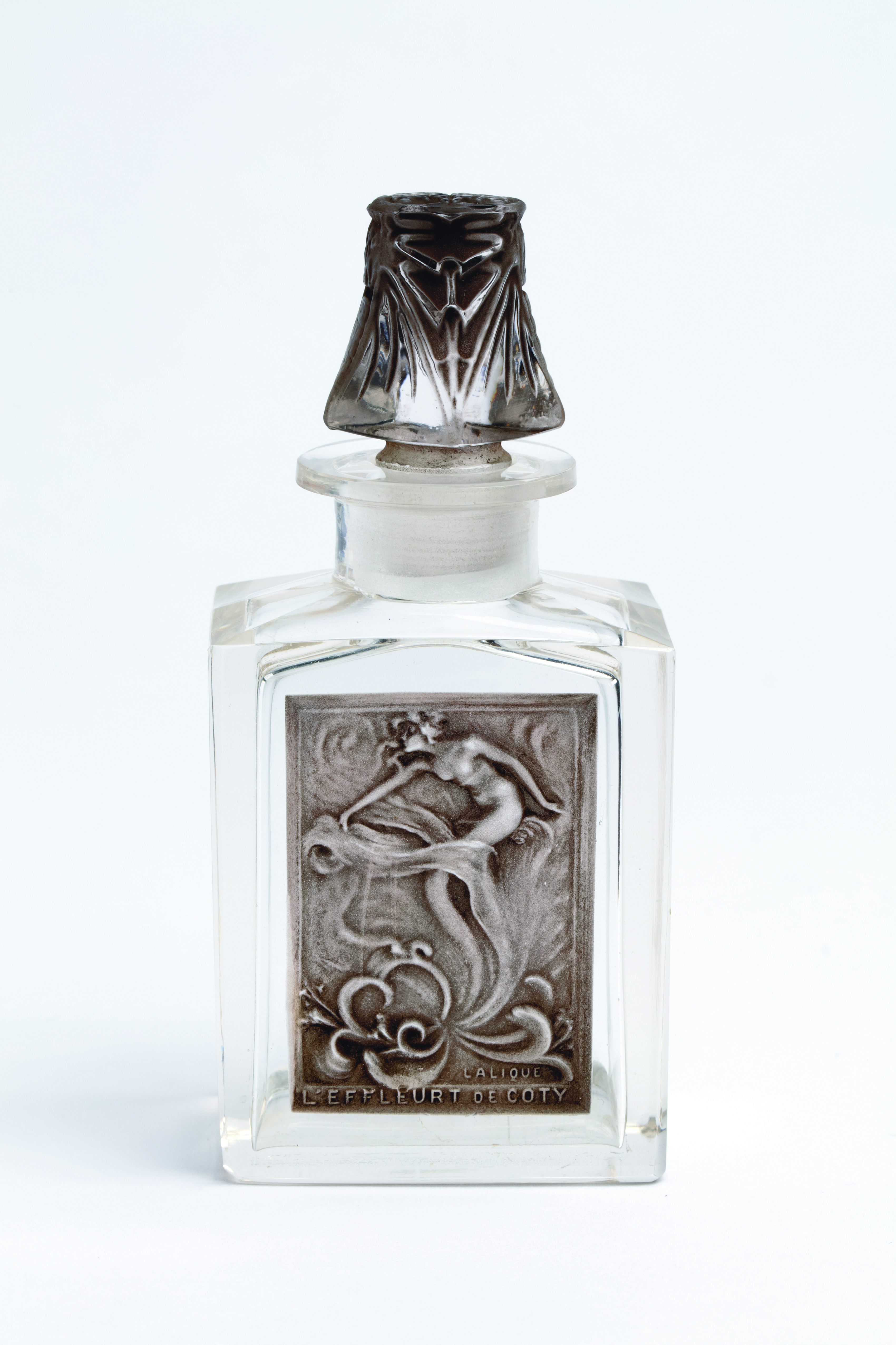 L’effleura de François Coty, de Lalique SA Modèle crée par Lalique en 1912 – Verre soufflé-moulé, patiné avec son bouchon moulé-pressé patiné