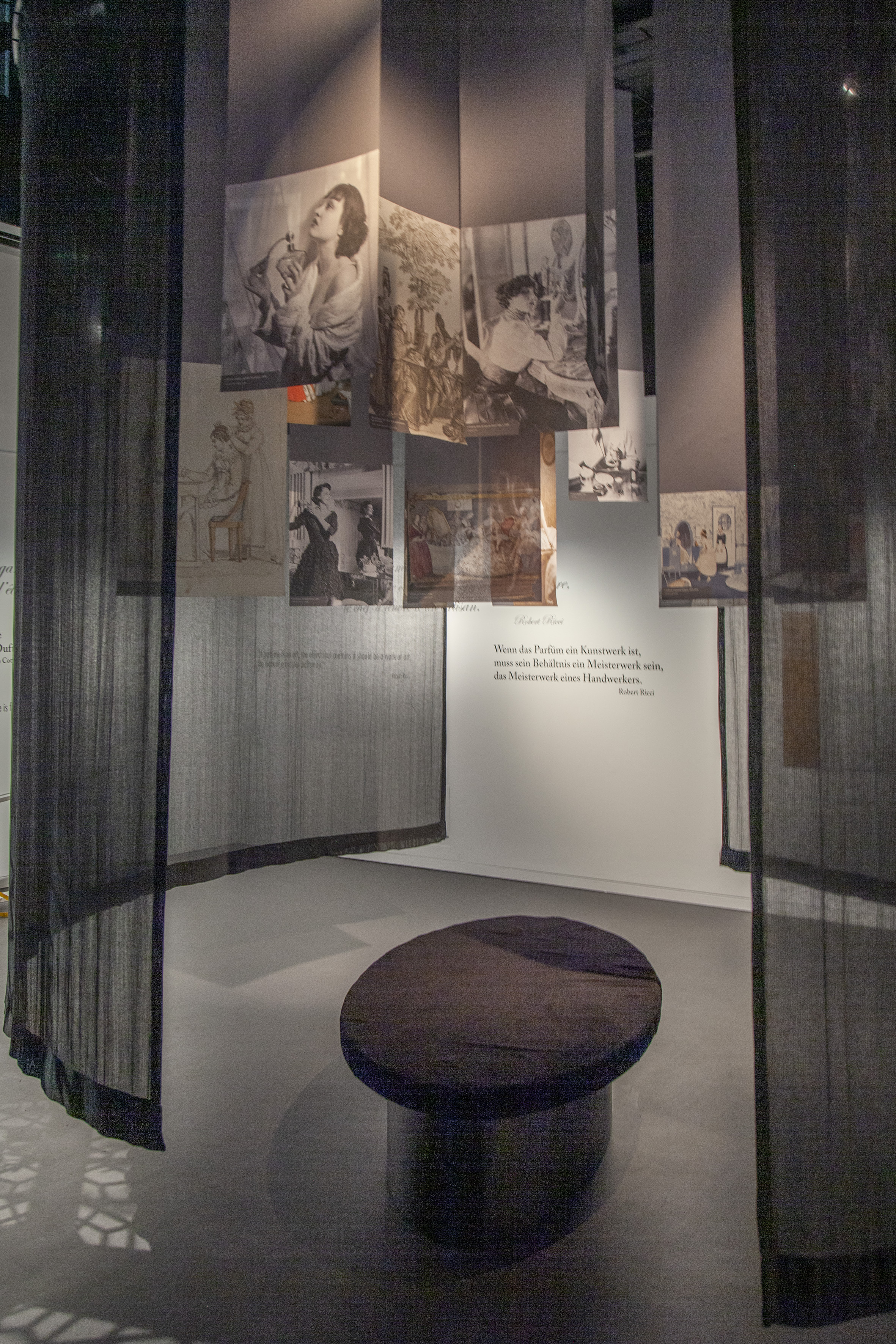 L’exposition « L’Invention du Parfum Moderne » aborde l’odyssée du parfum, au travers de photos d’archives, puis se poursuit avec des flacons de parfum, provenant de collections privées. Une jolie façon de raconter, l’histoire du parfum au travers des siècles.