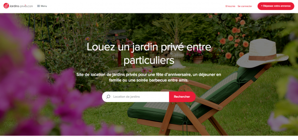 Il s’agit du premier site d’annonces de jardins à louer entre particuliers ! Eh oui, et pourquoi pas. Tout est venu du constat de Pascale Krief, alors allongée dans son jardin, où se sentant merveilleusement bien dans son jardin, a un flash, en imaginant de le faire partager à d’autres. L’idée est simple, pourquoi ne pas louer un jardin pour fêter un anniversaire ou un déjeuner en famille plutôt qu’un lieu quand on habite au coeur d’une ville. Enfin, pourquoi ne pas bénéficier d’un complément de revenus pour équilibrer leurs frais et améliorer leur jardin. Cette jolie aventure est celle d’une mère Pascale Krief et de sa fille Maeva Bel Harat. Pour en savoir plus, rendez-vous sur www.jardinsprives.com.