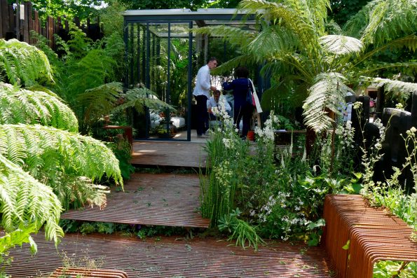 Pour ce jardin du salon Jardins Jardin, Fabien Cury a conçu avec son équipe un jardin Low Impact. Tout est parti du constat suivant – Si au 20ème siècle, nous cherchons à maîtriser la nature, au 21ème, nous nous devons d’apprendre d’elle et de réduire notre impact sur le végétal. Un exercice fort bien réussi sur ce minuscule espace ! Chez Didier Danet “nous aimons la matière, et nous privilégions le foisonnement de plantes tel un fouillis organisé, qui reste néanmoins moderne et contemporain” m’explique Fabien. Son jardin aussi petit soit-il a une âme, et chaque élément a sa raison d’être. On peut aussi voir une autre de leurs réalisations sur le stand Rustica.