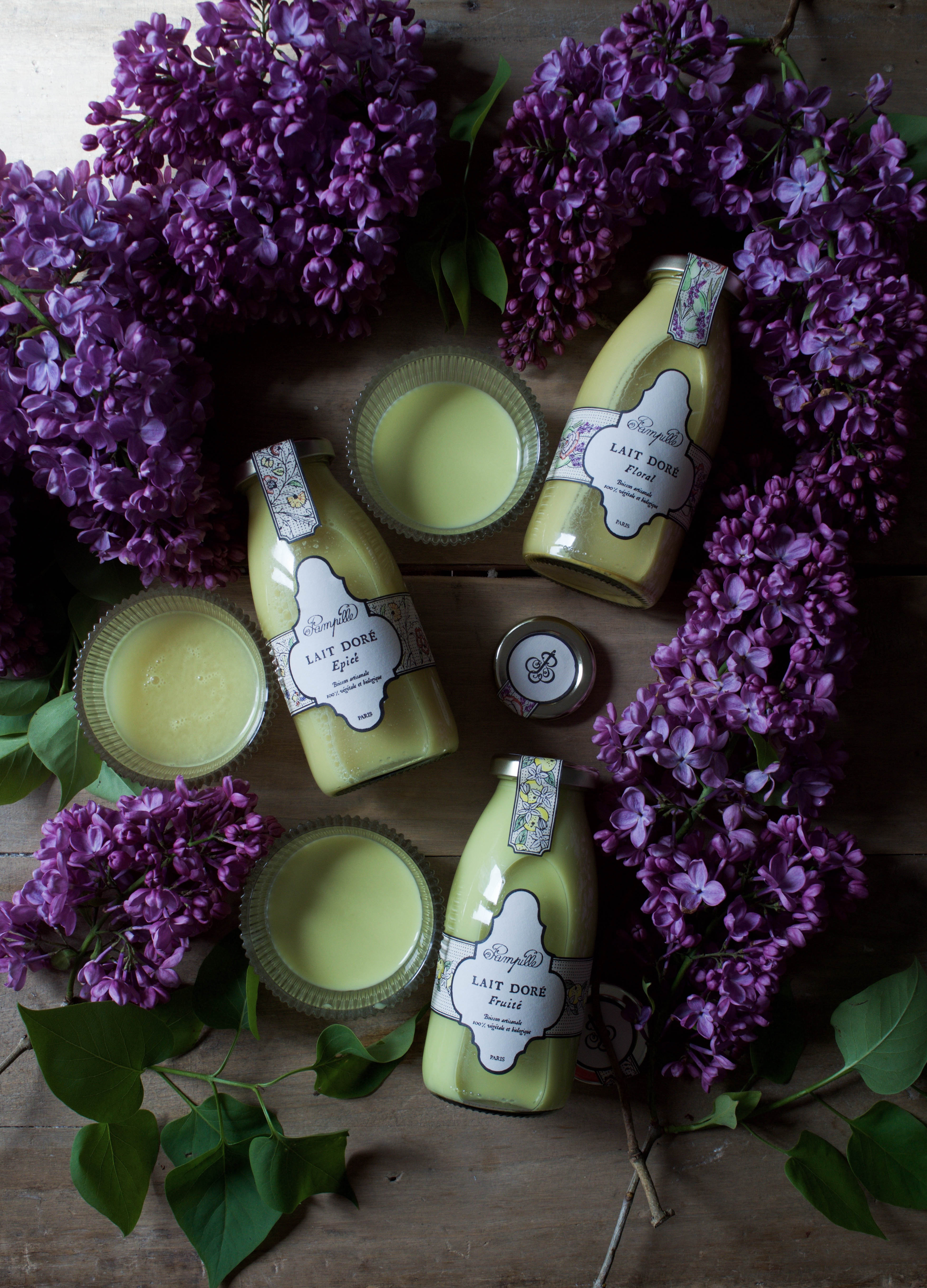- Le lait fruité avec sa note pistache et yuzu sur fond de gingembre. On y perçoit aussi les notes poudrées de la fleur d’oranger avec bien sûr, le curcuma et le poivre noir. C’est le lait doré dynamisant.