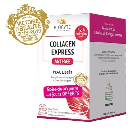 Mais, comment lutter contre le vieillissement, et traverser le temps, sans en trop subir les méfaits ! Eh, bien Collagen Express est votre réponse. Il existe sous 4 formes : gomme, gélule, stick à boire, et barre enrobée de chocolat blanc ou noir.